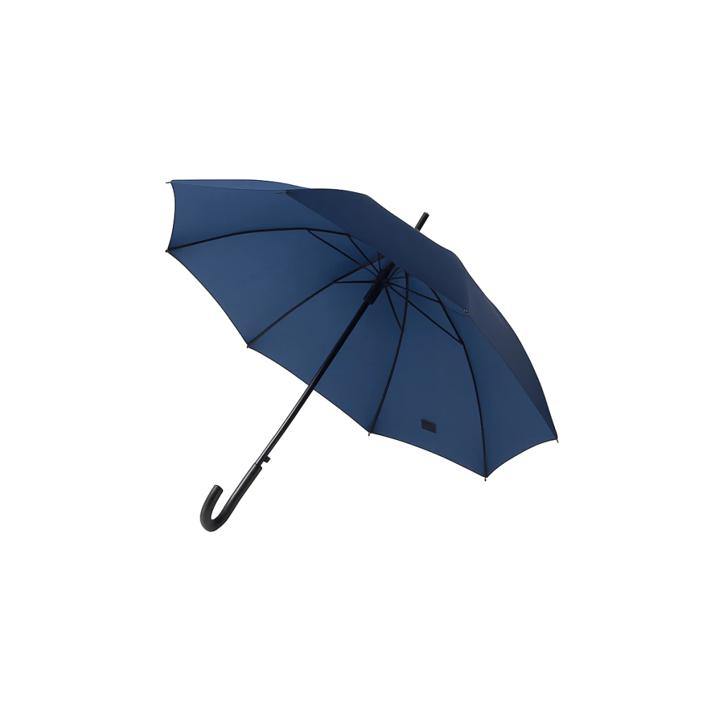Paraguas automático de estructura metálica con empuñadura curva plástica.