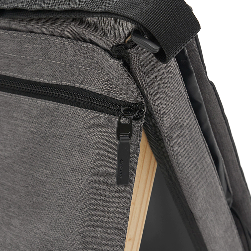 Silla Reposera plegable confeccionada en Polycanvas. El respaldo cuenta con un marco de madera, protegido con Cetol, que permite regular la inclinación, y con un bolsillo con cierre removible, pegado en velcro.